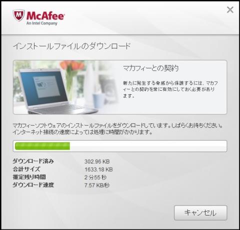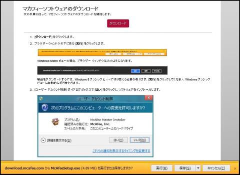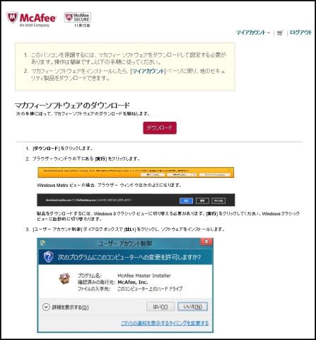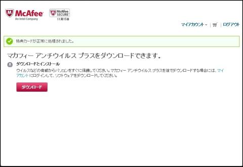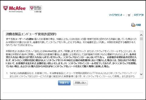 マカフィーソフトウェアのダウンロード画面が表示されます。