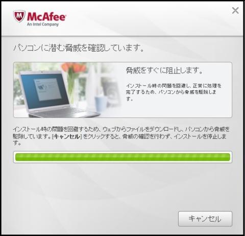 インストール前にパソコン内の脅威の駆除が実行されます。