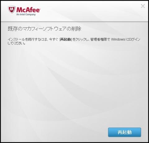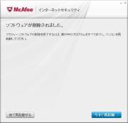 マカフィーソフトウェアの削除が完了すると「再起動」を求められますので、クリックします。