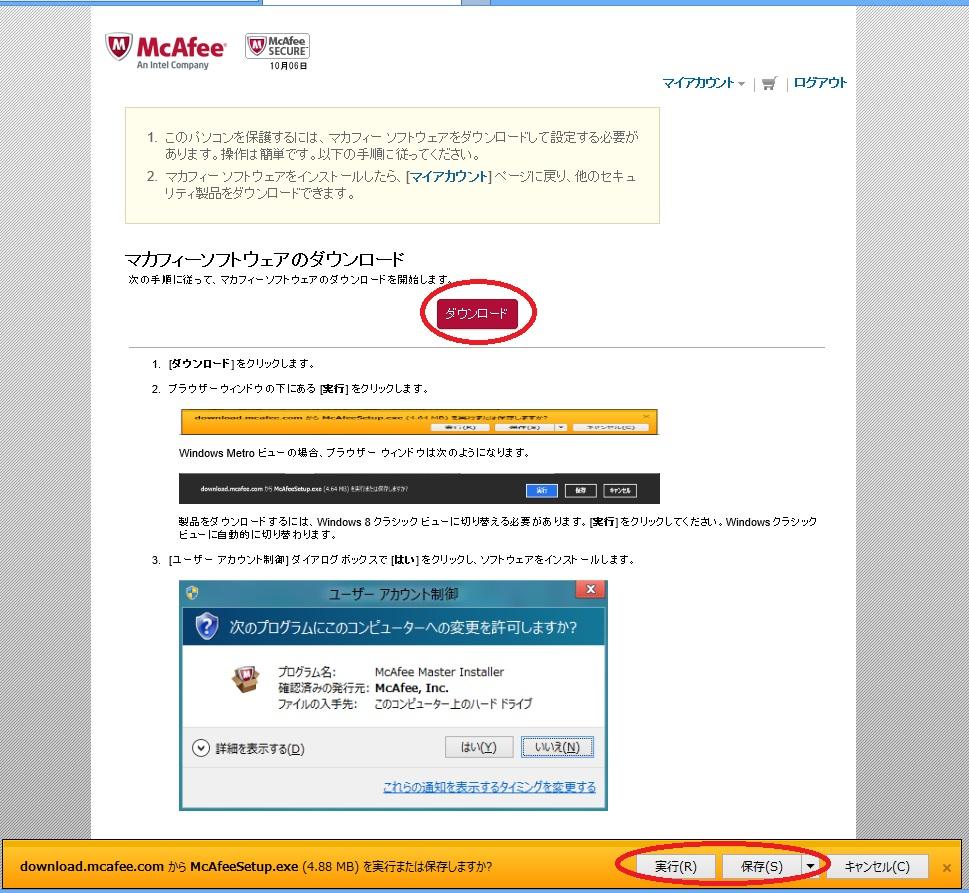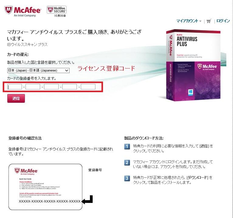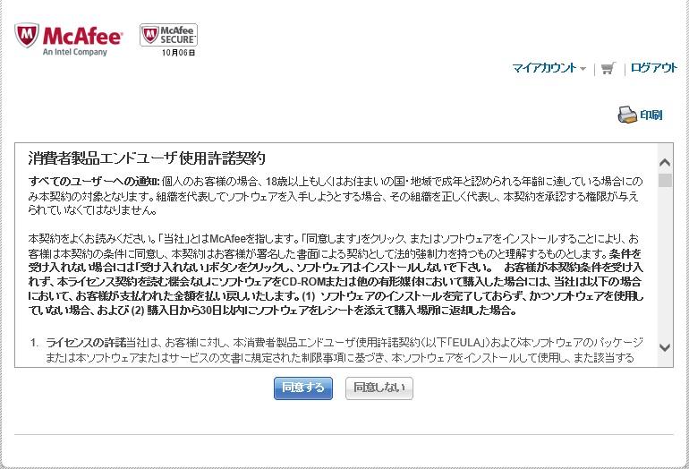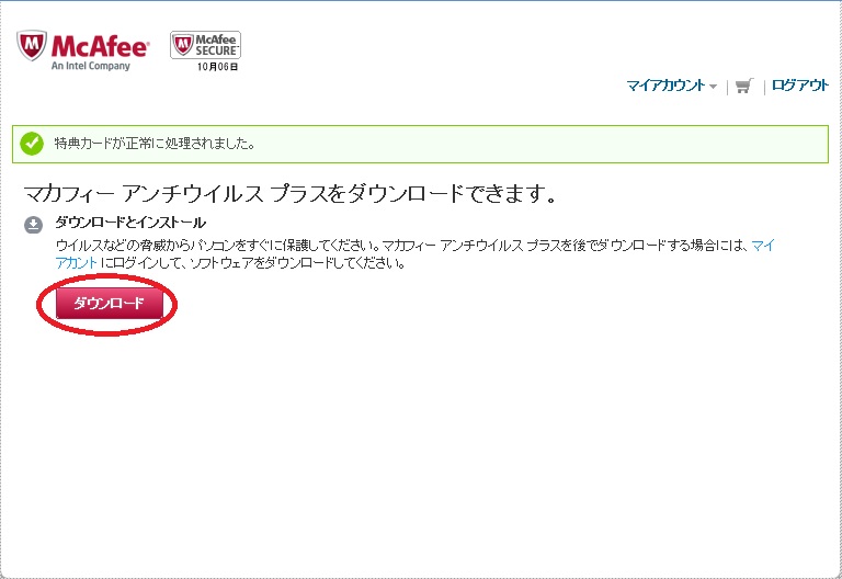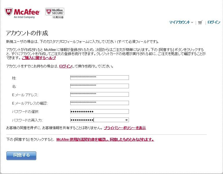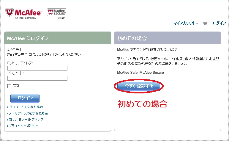 3.マカフィーアカウントか、新規アカウントを作成してログインすると、