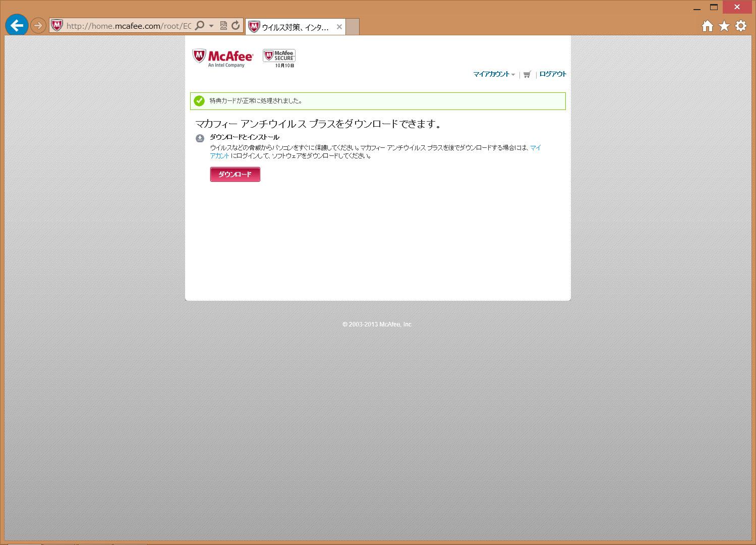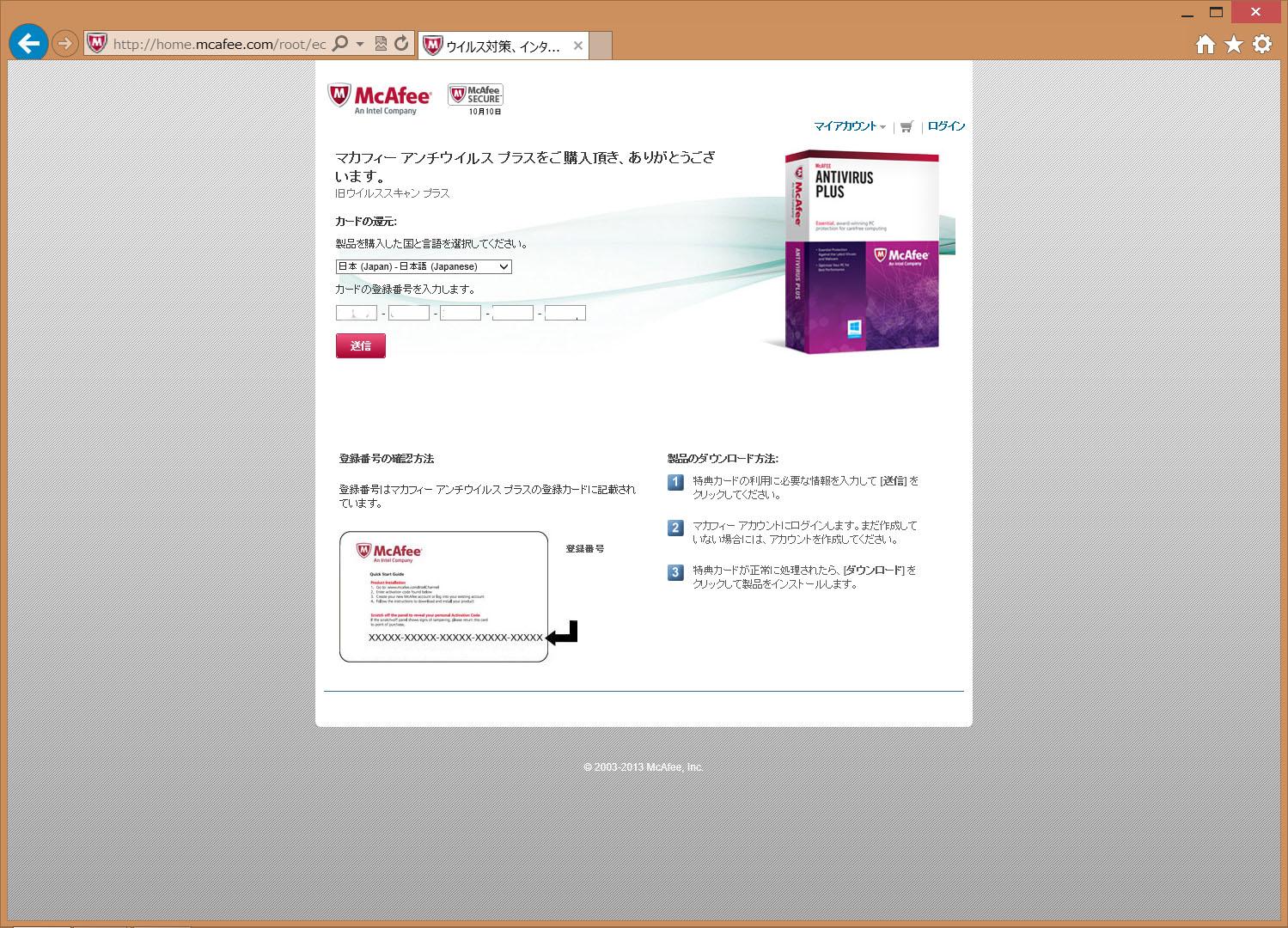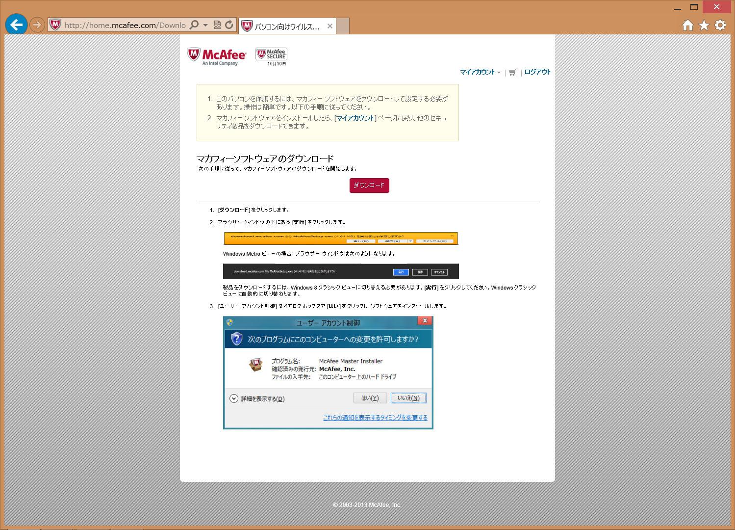 インストールする前に、http://www.macafee.com/intelchannelに接続し