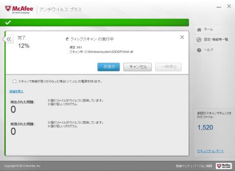 まあソフトによってどこをチェックするかは違うので一概には言えませんが、スキャン個数と時間を比較すると、ちょっとMcafee製品に分が悪いような・・・