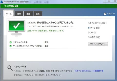今自宅には、4台ほどPCがいるのですが、すべてwindows標準のMicrosoft Security Essentialsというものが入っています。一時期アバスト等も入れていた時期があるのですが、最終的に今の状態で落ち着きました。
