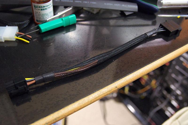 切断部分はスミチューブで絶縁して、最後にメッシュホースで見栄を整えて完了。