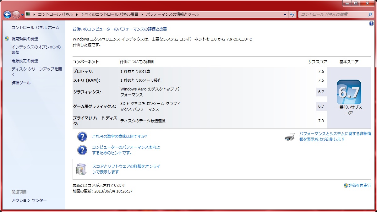 メモリが7.6に下がっているのはこの時点では1333MHzで稼働させていたからです。