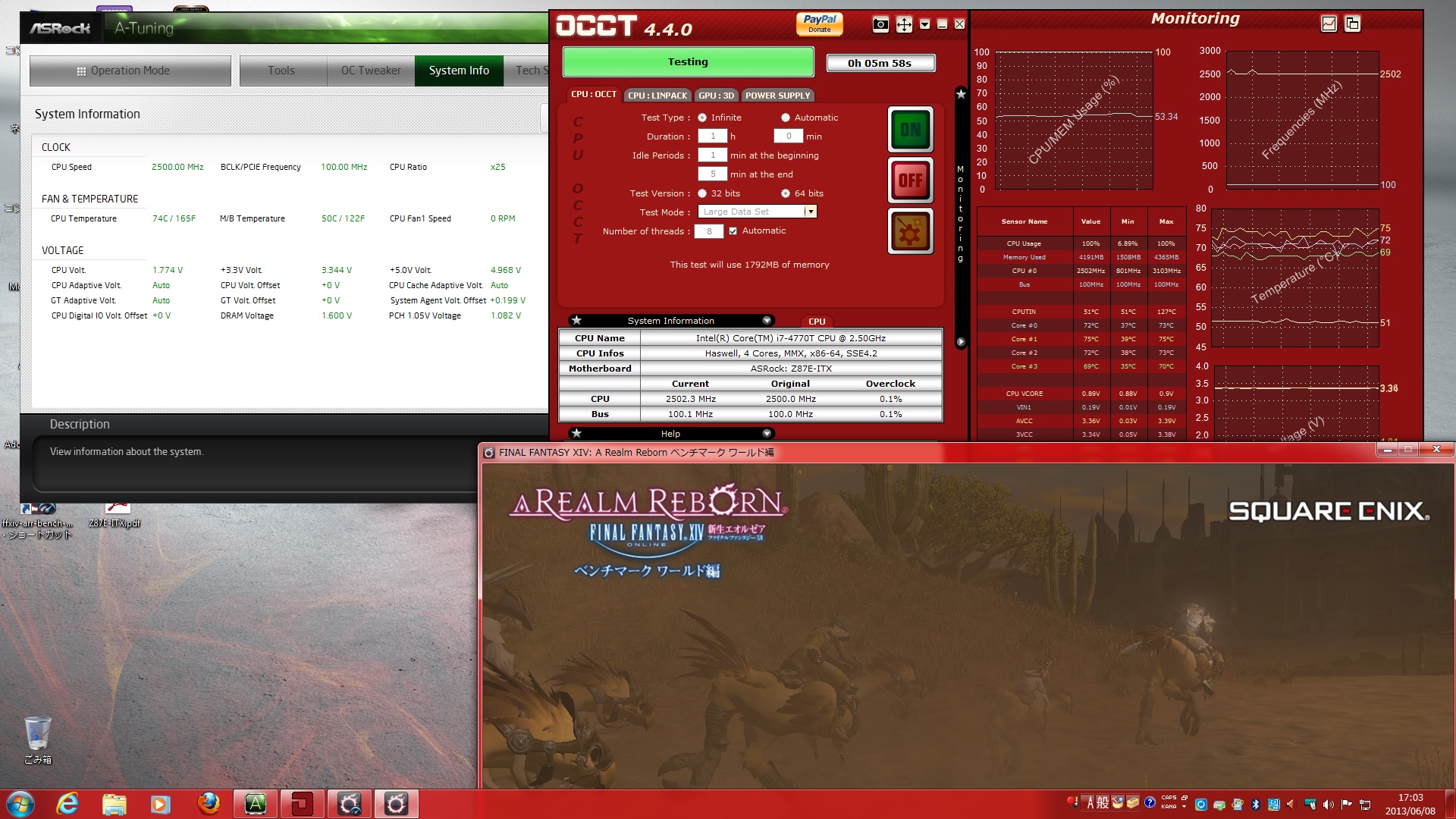 OCCT+FF14ベンチ中でも80℃以下ですね。
