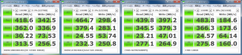 次にCrystalDiskMarkで、並び順は同じになってます。