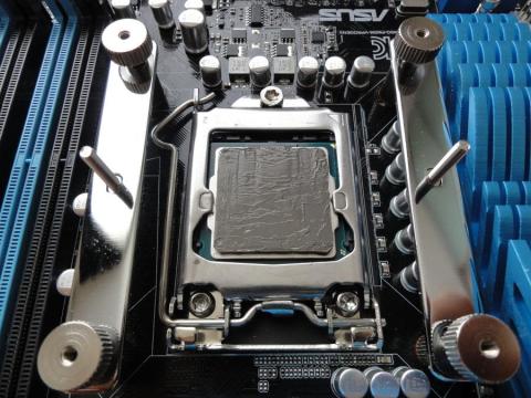 CPUクーラーを乗せ、上から金属部品でH型に固定。