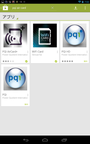 iPhone と同様、Google Playから、アプリ(PQI AirCard+)をインストールし、WiFiの接続先を Air Card に切り替えてアプリを起動するとカード内のファイルが見える。