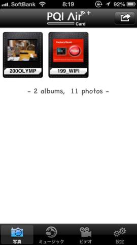初めに、WiFiの接続先を [PQI Air card] に切り替える必要があるが、接続できればファイルが見える。