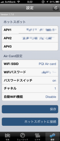 設定したら、一旦「保存」した上で、「ホットスポットに接続」をタップする。
