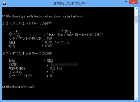 今回はドライバがWindows 8のみの提供だったので、そちらでSoftAPを試してみました。