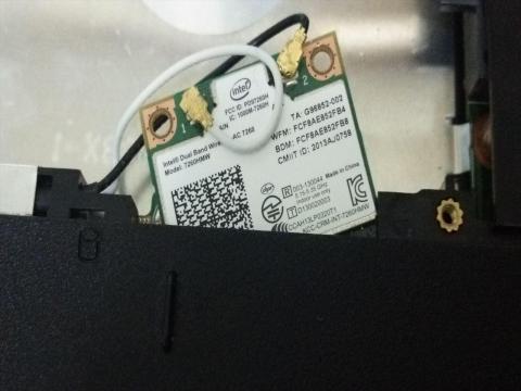 3、モジュールを固定してるネジを外し、モジュールを交換(*スロットに入れる前にアンテナ線を取り付けないととんでもなく難しい)