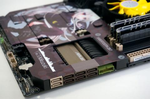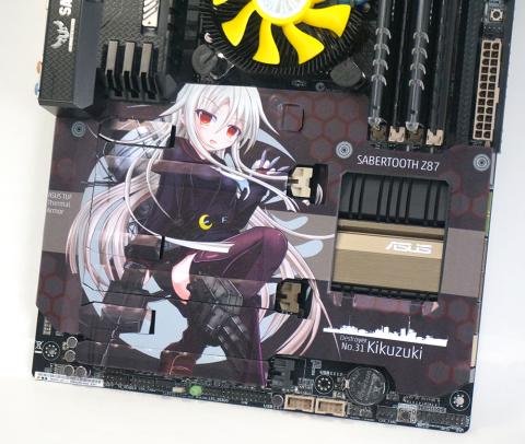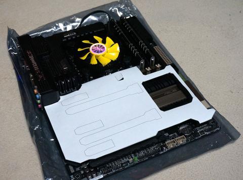 SATAコネクタ部は当初カットしてしまおうかと思ったがそのままぶっ通しで実用上問題なさそうだったのではりつけ。当然チップセットヒートシンクは熱を持つのでくりぬく。