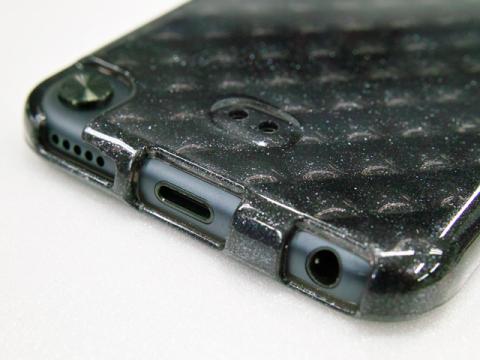 本製品を装着すると、正直スマート感はなく、どちらかというと野暮ったい感じになってしまいますが、これまで使ってきたiPod touch(4th)でも、今回の製品に似たクリスタルカットによるデザインのもの(確かケーズデンキPB製品)を使用しており、適度なボリューム感と滑りにくいところが気に入っていましたので、本体保護を重視して今回もまた同様のものを購入した次第です。