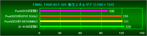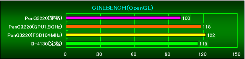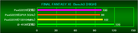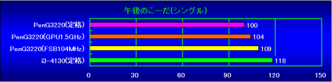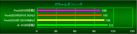 PenG3220(GPU1.5GHz)の状態から、FSBを104MHzまで上げた状態のスコアです。
