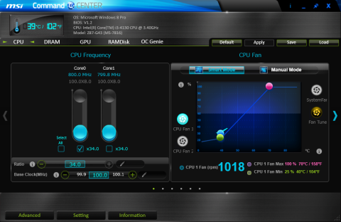 このツールはMSIのマザーボードの各温度、クロック、ファンの回転数表示、調整などを行うユーティリティですが、オーバークロック関係の設定も簡易的に行えます。