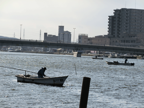 実は、宍道湖から海に流れる川にもシジミ漁の船が出かけていきます。