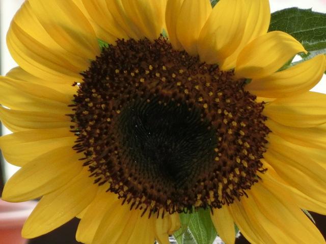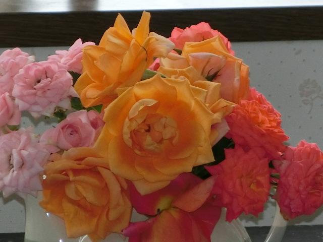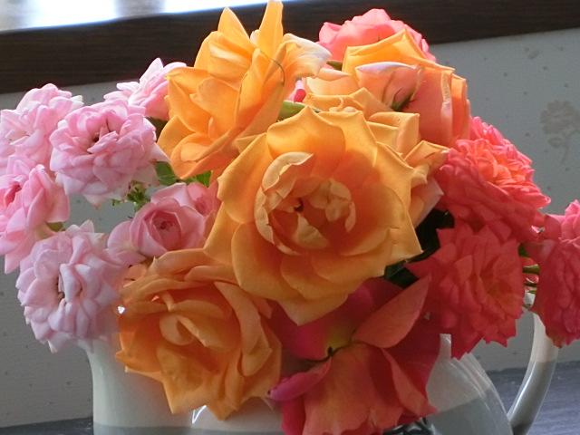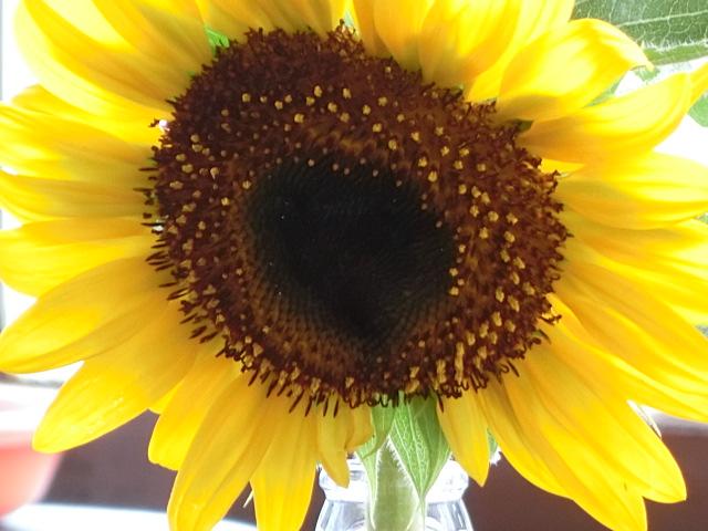 庭で咲いたバラと今年初めて咲いたひまわりを置いていましたので