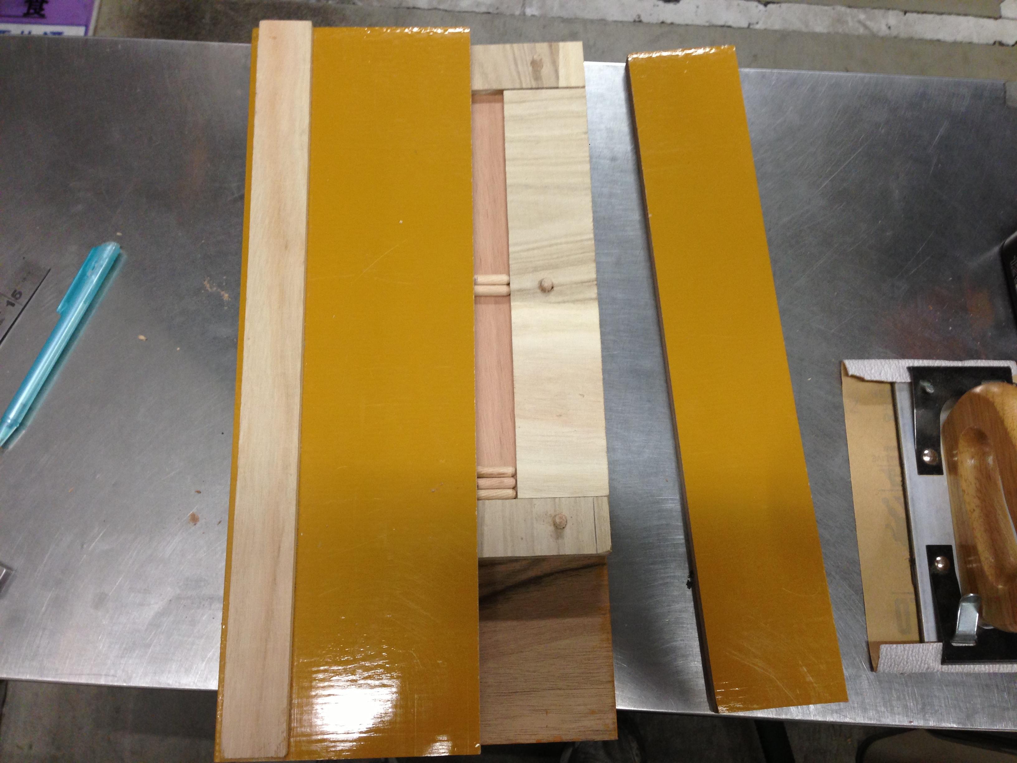 もう一枚上に板をかぶせて端材を置きます、この板はダイソー製板材です