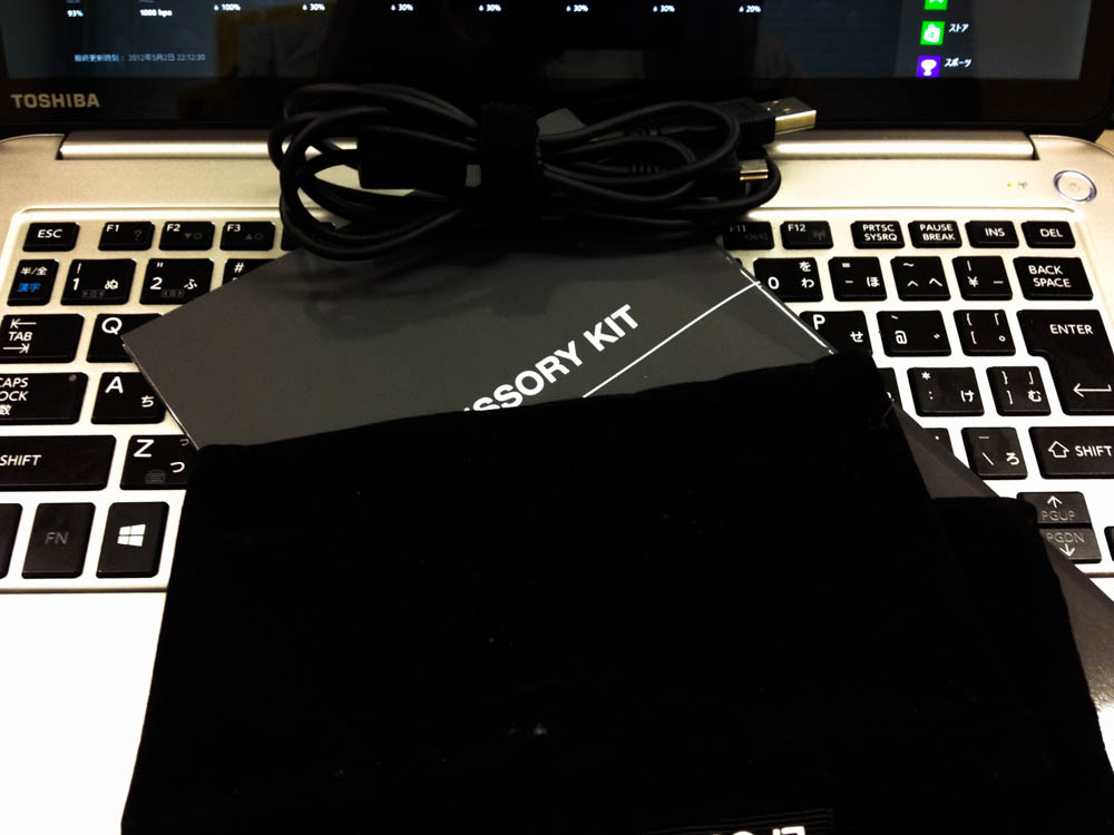 中身はアクセサリーキット(CDとか保証書とか、掃除用のシートなどが入ってます)