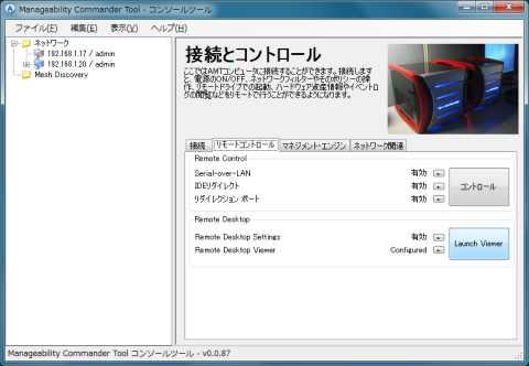 今回はインストール、設定などをすべてリモートで行ってみます。リモート操作用のソフトウェアは第三の謎で使ったManageability Commander Toolを使います。