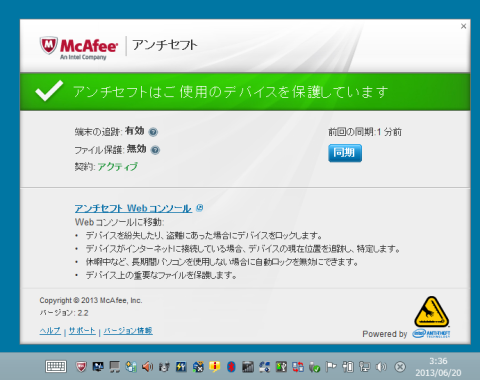 どういう状態なのかわかりませんが、マカフィー アンチセフトのアイコンがデスクトップに初めからあるのでこれをクリックしてみます。