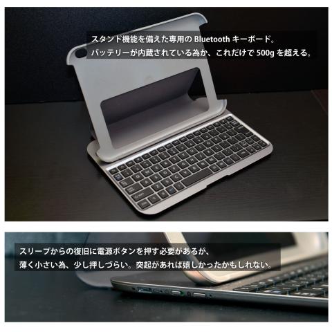 そのほかに外観上の気になる点としては上側面部の電源ボタンがカバー装着時では少し押しづらい点と、キーボードの出来が予想以上に良いところでしょうか。