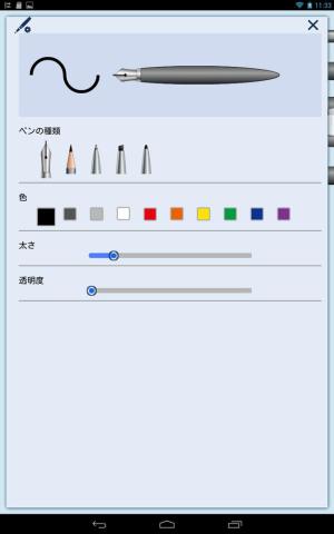 それぞれ下のスライダー操作により、太さと透明度を変更できます。