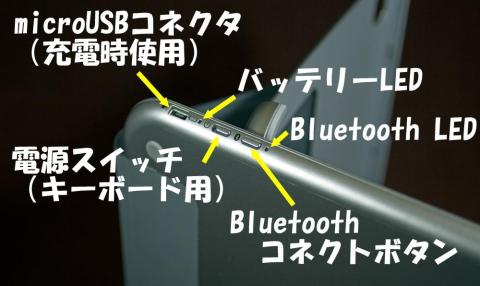 バッテリーも内蔵されており、充電には microUSBコネクタから行いますが、説明書では付属のケーブルをタブレットに繋ぐ事で充電を行うようあります。
