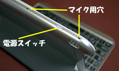 上面にはキーボードカバーにもあったように、電源スイッチとマイクがあります。