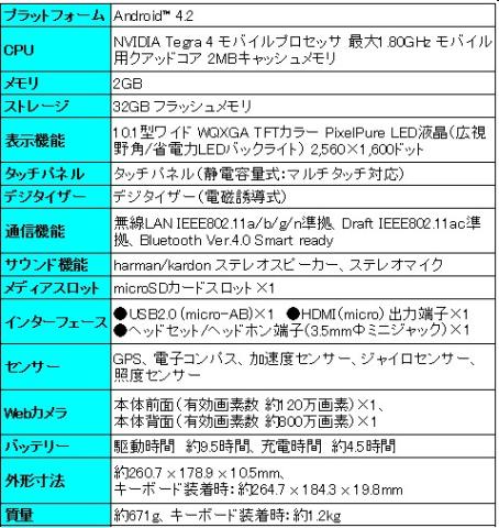 特筆すべきは現在の Android機のなかで高速を誇る NVIDIA Tegra 4の搭載と 2,560 x 1,600dotの高詳細な液晶でしょう。