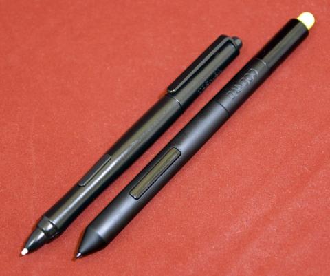 WACOMの Bamboo Fun付属のペンと比べるとちょっと細めで短いです。