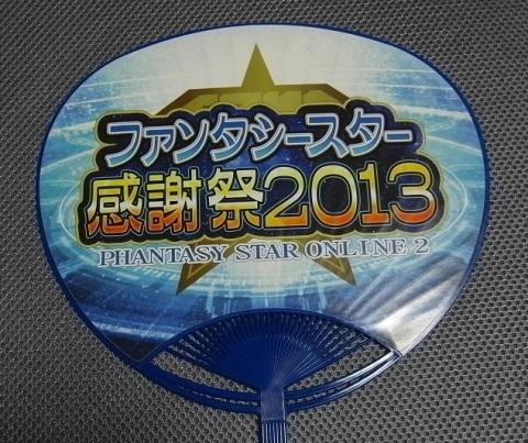 ブルーの枠にPSO2と感謝祭のロゴの入った絵柄のうちわに