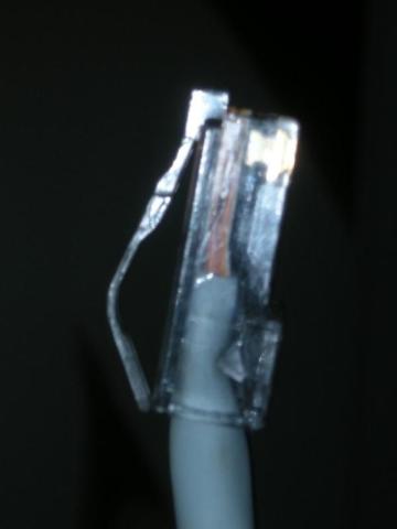 何が「防御力の強いじゃぁぁぁ?」と思った方、甘いですね。このLANコネクタを圧着したLANケーブルは絡まった中からLANケーブルを掘り出そうと、爪が引っかかって爪が後ろ側に反り返ってしまって疲労が増えたり、爪自体をロストしにくいのです!