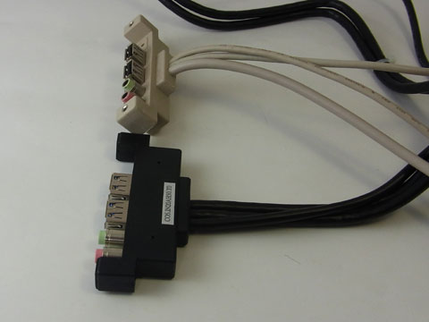 しかし裏面を見て納得、白い方が元々PC-P50RについていたUSB2.0版だが、ケーブルがL字に出されて奥行きが短くなっている。PC-P50Rはフロントポートが天板に来る構造なので、このようにL字にならないと最上段の5インチベイにケーブルが干渉してしまうのだ。