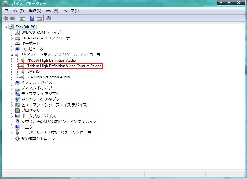 ドライバーはTrident High Definition Video Capture Deviceとなります
