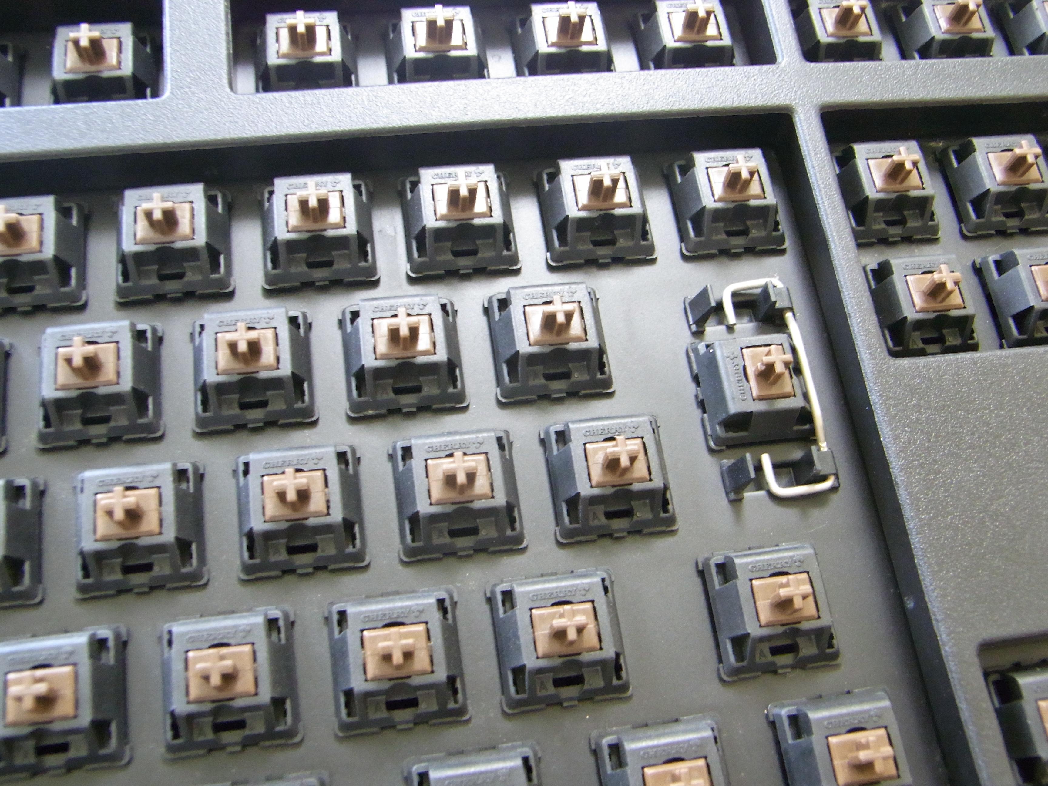 ただ、EnterキーやShiftキーなどの大型キーにはスタビライザーという針金が使われているので、外すのには少しコツがいる。