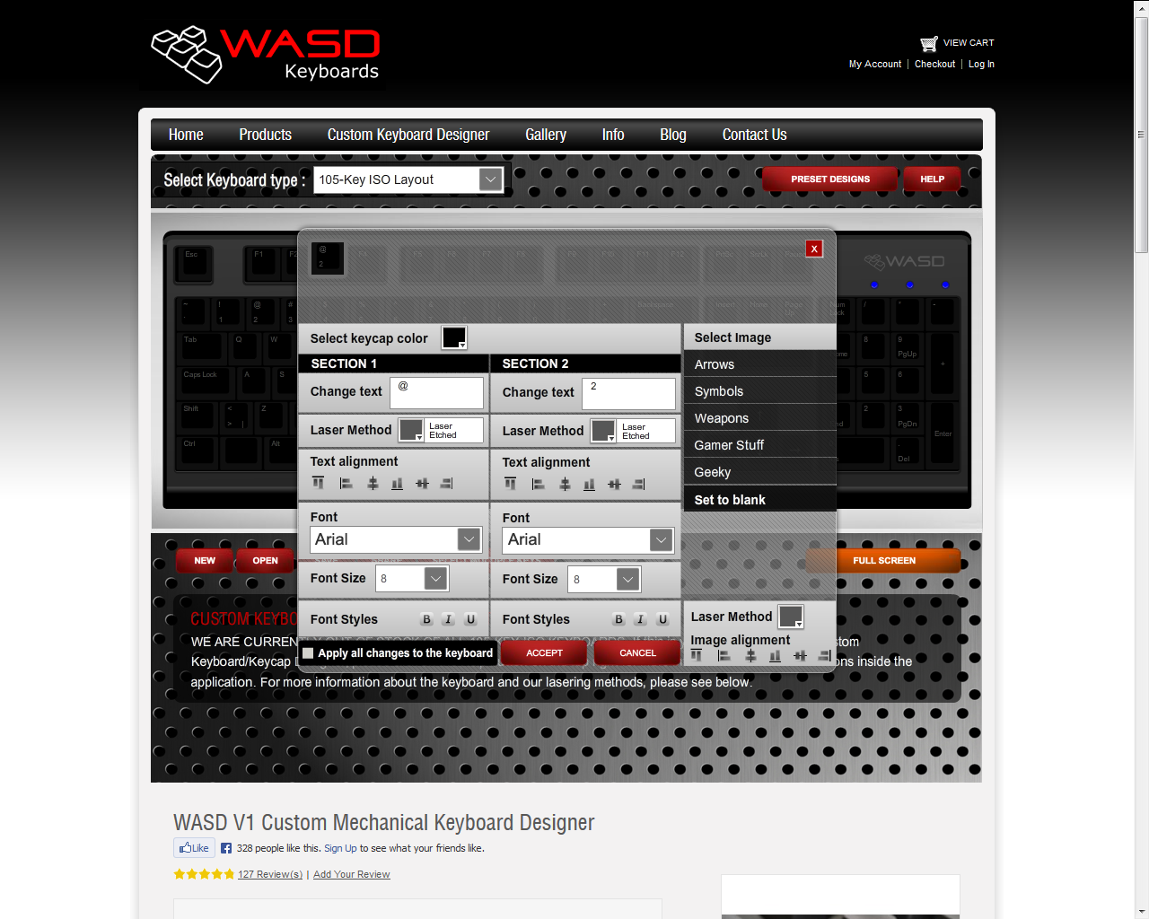 キーキャップの色、文字の種類/サイズ/スタイル/印字方法/配置など、かなり細かく指定することができる。