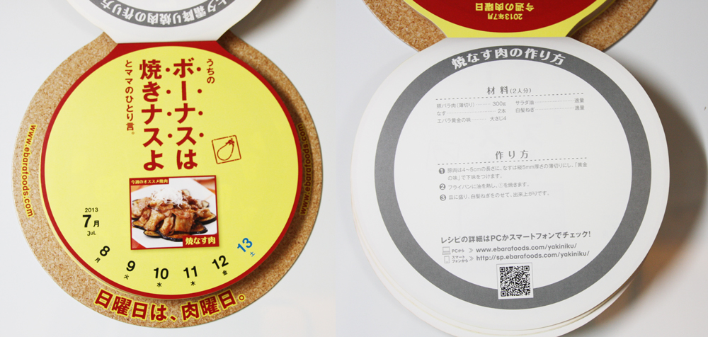 カレンダーの表には肉料理、裏にはレシピが書いてありました。