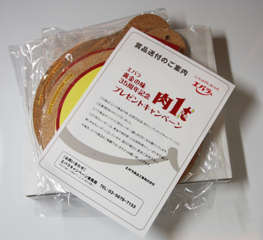 残念ながら外れたらしく、Wチャンス賞の「肉カレンダー」が届きました。