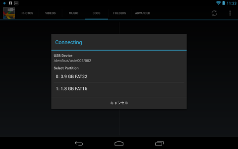 ところが、外部アプリを使って USBストレージを認識させている Nexus 7では、動きが違いました。