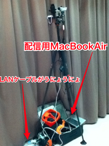 USTREAMの配信に使うLANケーブルは50mのモノと30mのモノをその時の状況に応じて使い分けたり、2本繋いで80mにしたりして使っています