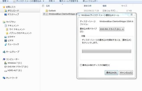 Windows7についているWindowsディスク書き込みツールを使用して書き込みしました。
