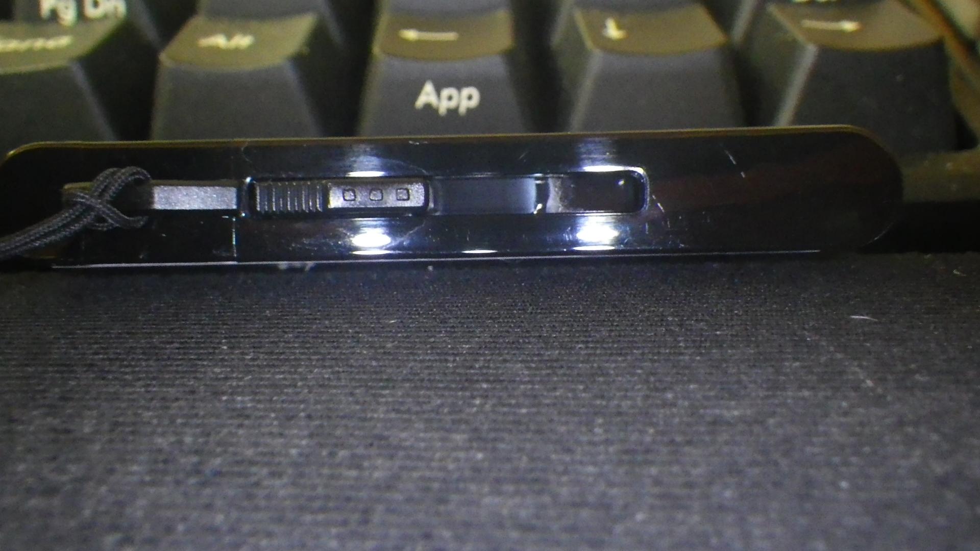 ストラップの穴が メモリ端子 出し入れレバーの横にあり