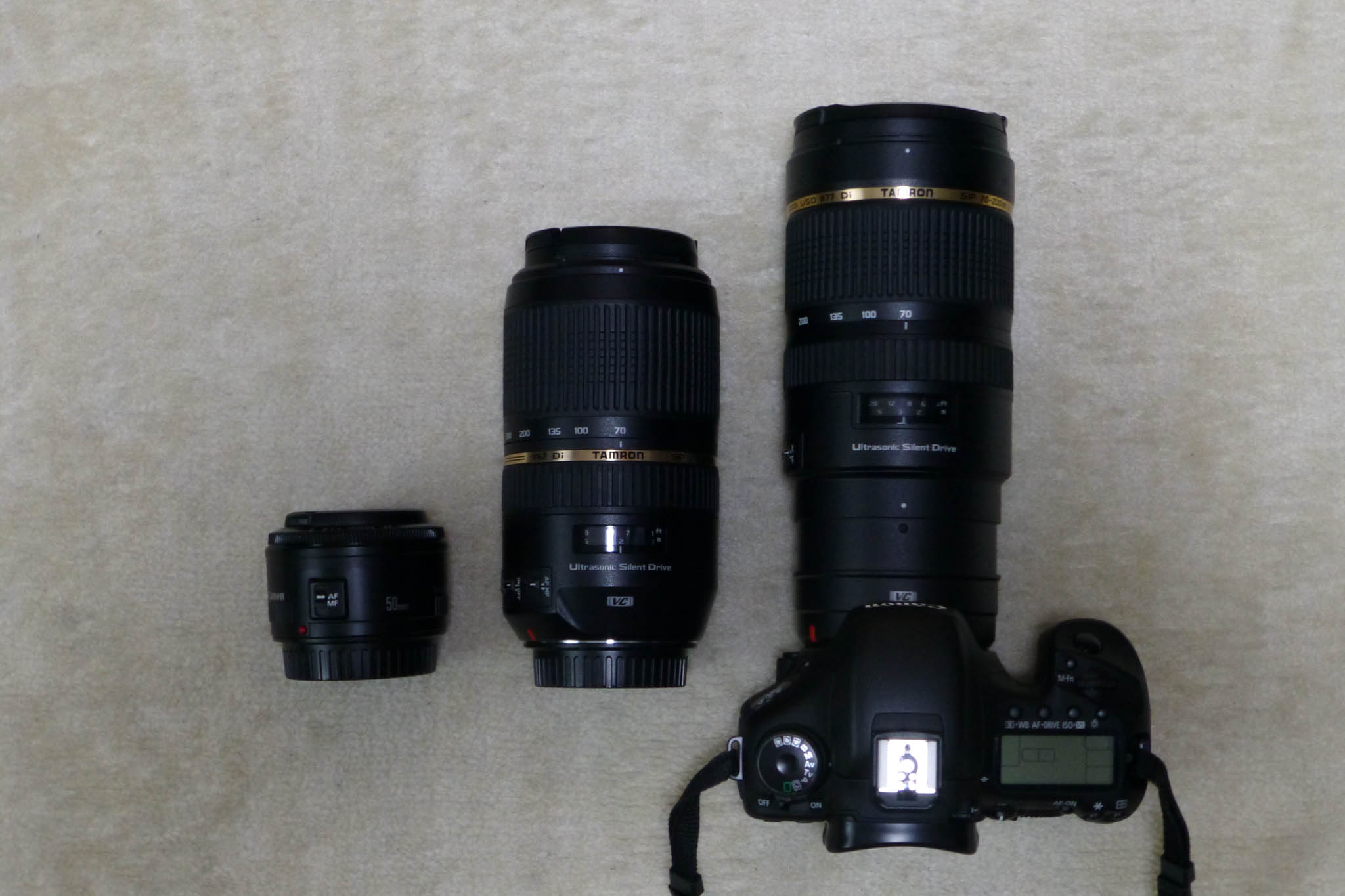 とりあえず並べてみました。右から本レンズ、真中が70-300mmVC USD、左がEF50mmF1.8IIです。