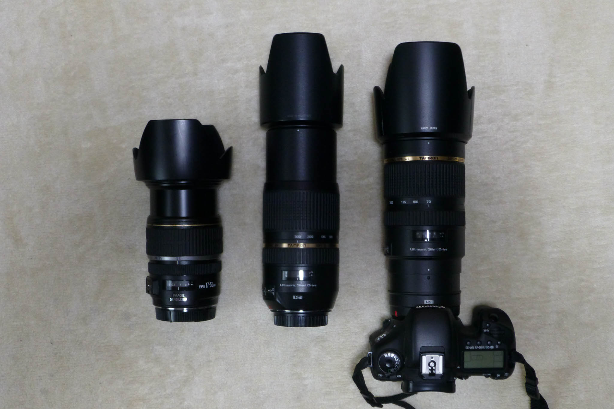 ここではEF50mmF1.8IIに代わってEF-S17-55mmF2.8を並べてみました。こうやってみるとズーム時の長さは70-300mmVC USDの方が長いので、しらんぷりしていればわからないかもしれませんね^^