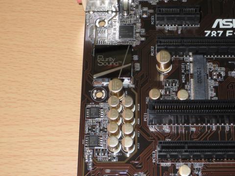 PCI-Eブリッジチップは搭載されていないタイプで7番目のPCI-Ex16スロットを動作させると”x8 x4 x4”のレーン分割になる点と、上位モデルの無線LAN搭載モデルとの兼ね合いでしょうか。mini-PCI Express 2.0スロットを搭載しているためPCI-Ex1スロットが”1基と少ないので拡張カード類を複数さす場合には注意が必要です。