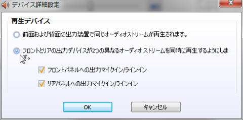 代わりに標準では”前面および背面の出力装置で同じオーディオストリームが再生されます。”から”フロントとリアの出力デバイスが2つの異なるオーディオストリームを同時に再生するようにします。”という設定に変更可能。