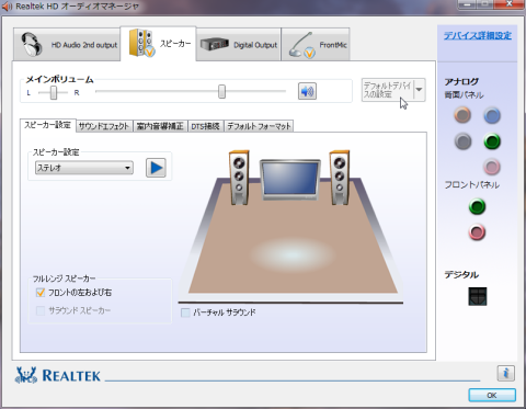 その後、H87E-ITX/ac用にRealtek ALC1150のオーディオドライバ 6.0.1.6953が公開されたのでダウンロードしてインストールしてみましたがフロントオーディオの自動切換え方法は変わらずコントロールパネル経由で行う必要有りで改善ぜず。仕様の可能性が高いです。